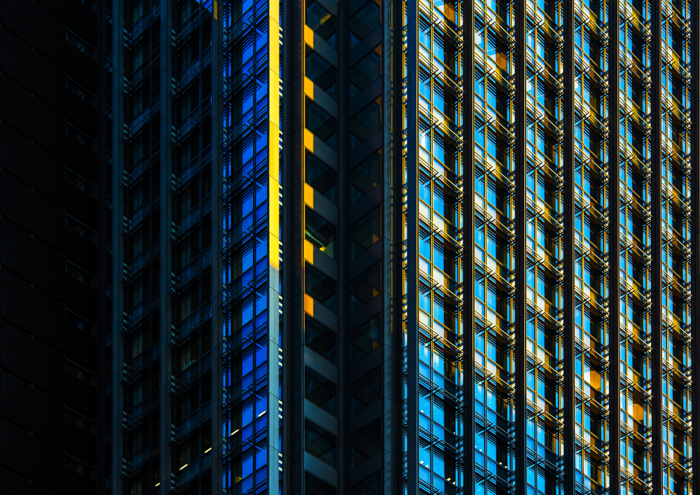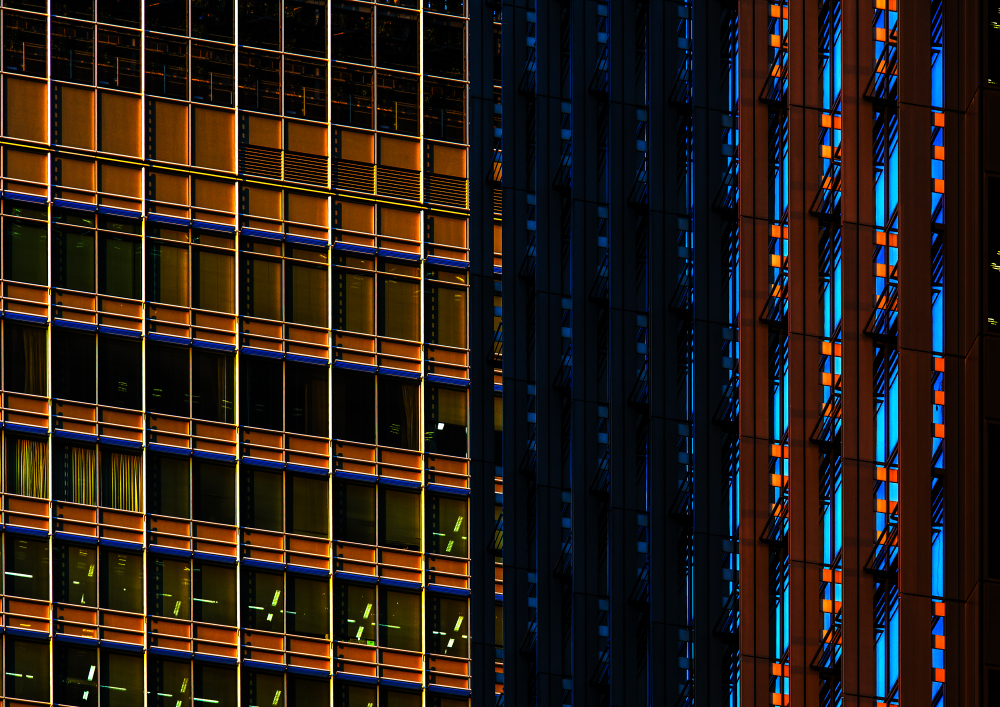 Fragments of the city captured like a kaleidoscope, where light and color endlessly collide